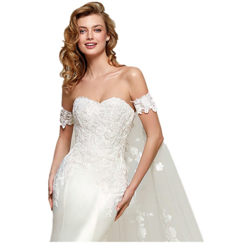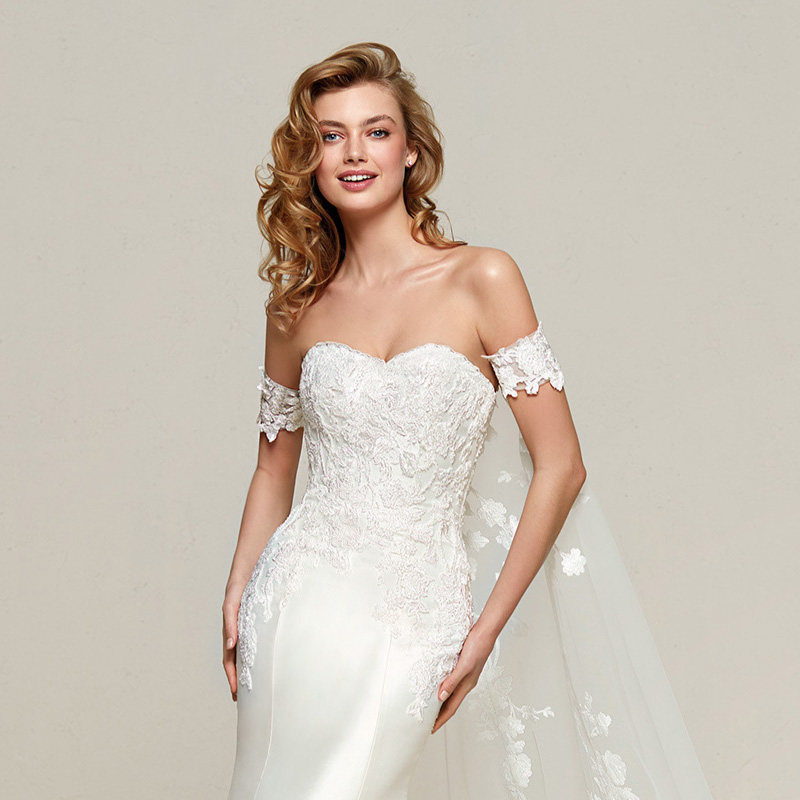 Xmsli | French One-Shoulder Satin Fishtail Wedding Dress with Detachable Train, Slim Fit Bridal Gown for Special Occasions