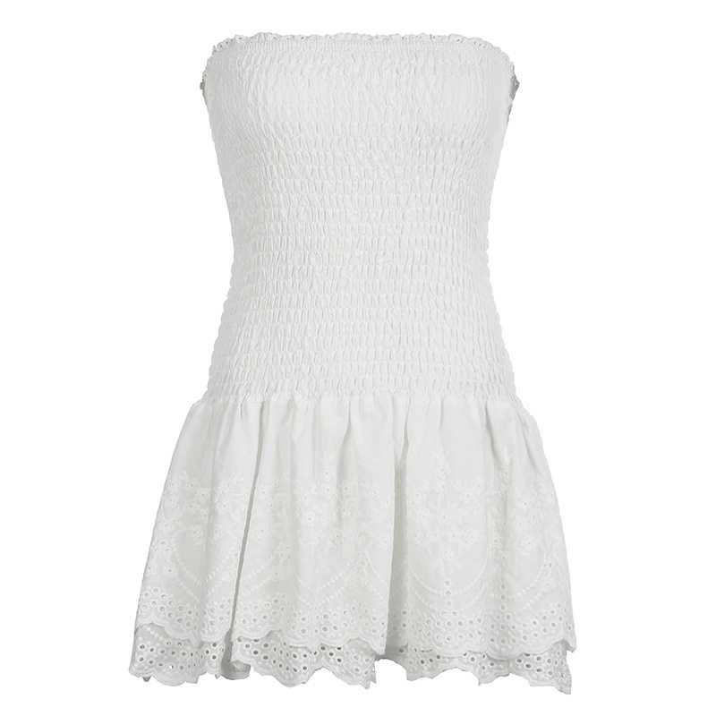 Xmsli | One-Shoulder Jacquard Tube Top Dress for Women, Slim Fit Backless Party Wear